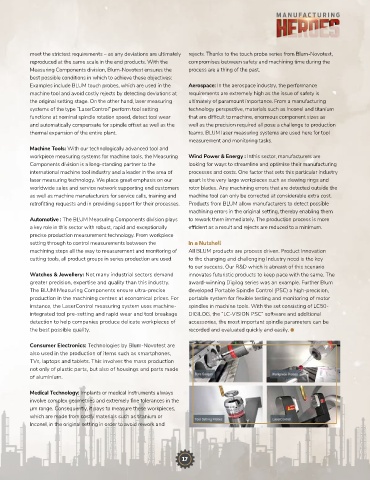 Examples include BLUM touch probes, which are used in the Aerospace: In the aerospace industry, the performance
