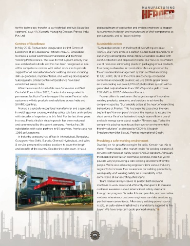 segment,” says V.V. Kamath, Managing Director, Fronius India its customers in design and manufacture of their components as
