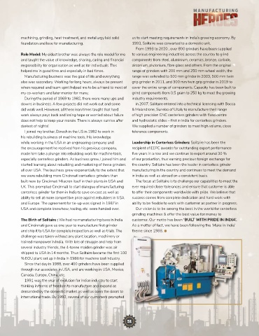 especially centerless grinders. As business grew, I joined him and of our production, thus earning precious foreign exchange for