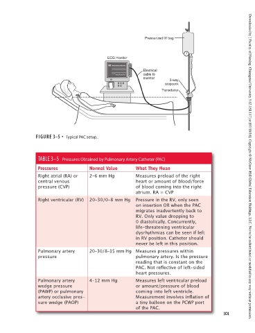 TABLE 3–5 Pressures Obtained by Pulmonary Artery Catheter (PAC)