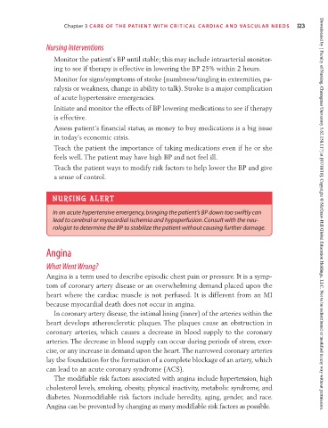 In an acute hypertensive emergency, bringing the patient’s BP down too swiftly can Downloaded by [ Faculty of Nursing, Chiangmai University 5.62.158.117] at [07/18/16]. Copyright © McGraw-Hill Global Education Holdings, LLC. Not to be redistributed or modified in any way without permission.