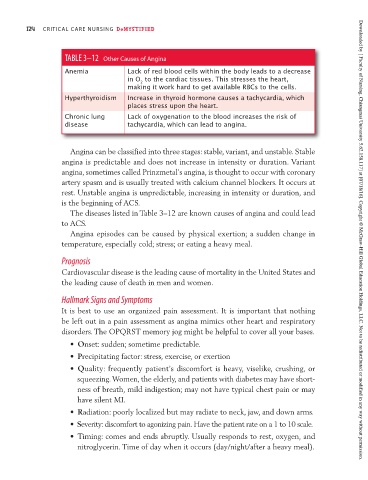 The diseases listed in Table 3–12 are known causes of angina and could lead