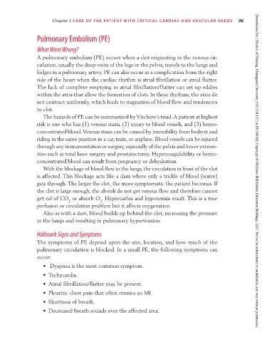 With the blockage of blood flow in the lungs, the circulation in front of the clot Downloaded by [ Faculty of Nursing, Chiangmai University 5.62.158.117] at [07/18/16]. Copyright © McGraw-Hill Global Education Holdings, LLC. Not to be redistributed or modified in any way without permission.