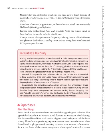was delivered to prevent clotting the IV line. Clots in a capped IV line would neces- Downloaded by [ Faculty of Nursing, Chiangmai University 5.62.158.117] at [07/18/16]. Copyright © McGraw-Hill Global Education Holdings, LLC. Not to be redistributed or modified in any way without permission.