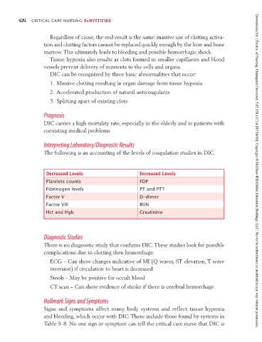 Table 9–8. No one sign or symptom can tell the critical care nurse that DIC is