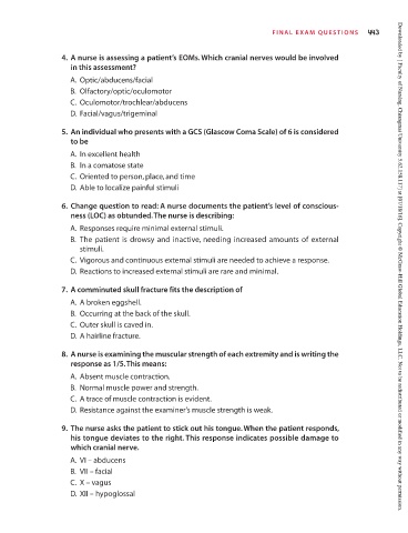 6. Change question to read: A nurse documents the patient’s level of conscious-