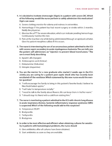 6. You are the mentor for a new graduate who started 2 weeks ago in the ICU. Downloaded by [ Faculty of Nursing, Chiangmai University 5.62.158.117] at [07/18/16]. Copyright © McGraw-Hill Global Education Holdings, LLC. Not to be redistributed or modified in any way without permission.