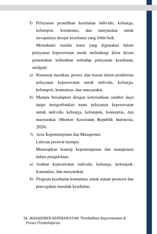 f) Pelayanan pemulihan kesehatan individu, keluarga,