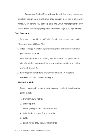 dari 1 meter dari orang yang sakit. (Dani and Yogi, 2020, pp. 94–95).