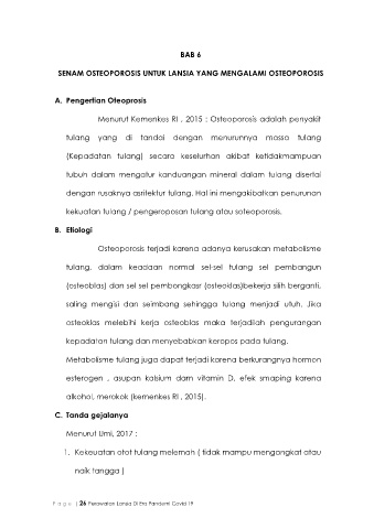 SENAM OSTEOPOROSIS UNTUK LANSIA YANG MENGALAMI OSTEOPOROSIS
