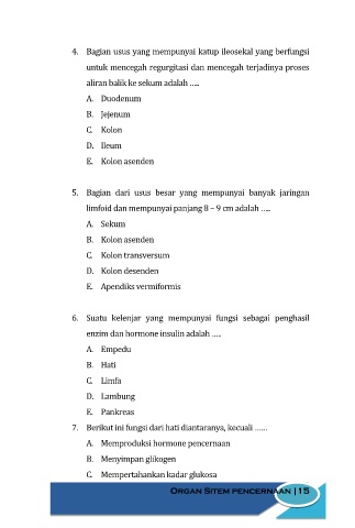 4. Bagian usus yang mempunyai katup ileosekal yang berfungsi