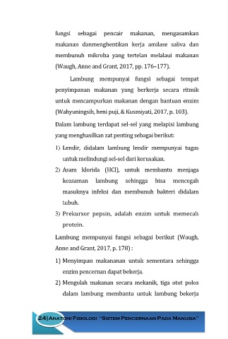 Lambung mempunyai fungsi sebagai berikut (Waugh,