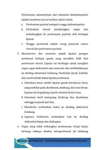 5. Mesenterium dan omentum adalah lipatan jaringan