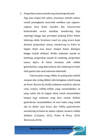 5. Pergerakan massa mendorong tinja bergerak jauh