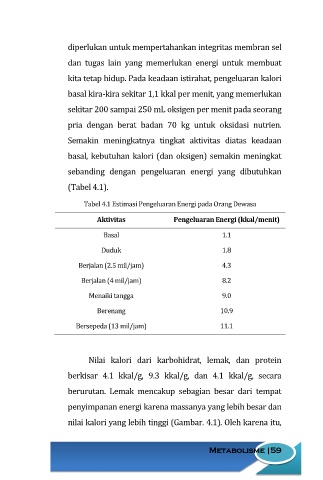 kita tetap hidup. Pada keadaan istirahat, pengeluaran kalori