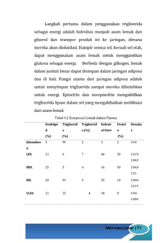 Tabel 4.2 Komposisi Lemak dalam Plasma