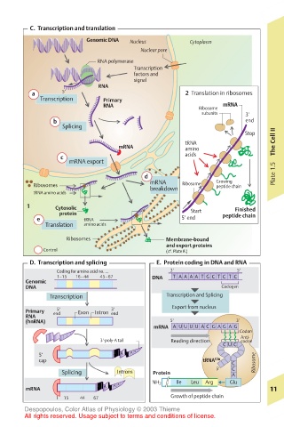 D. Transcription and splicing E. Protein coding in DNA and RNA