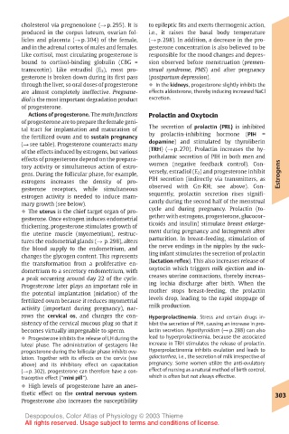 tures the endometrial glands (! p. 298), alters parturition. In breast-feeding, stimulation of