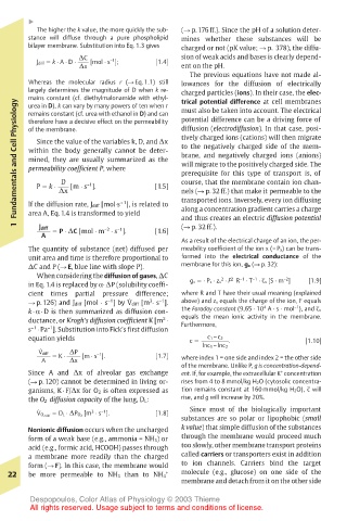 bilayer membrane. Substitution into Eq. 1.3 gives charged or not (pK value; ! p. 378), the diffu-
