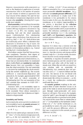 for NaCl with an (ideal) osmolality of drawn inside the cell due to osmosis (! p. 24).
