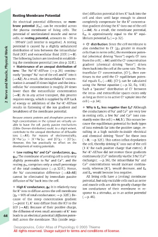 Nerve and Muscle, Physical Work ing the membrane potential (see also p. 32ff.). from the cell (! A4) until the Cl concentration
