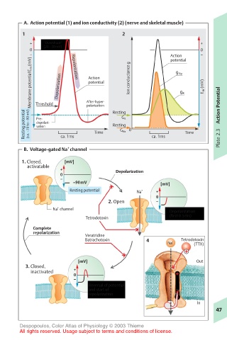 A. Action potential (1) and ion conductivity (2) (nerve and skeletal muscle)
