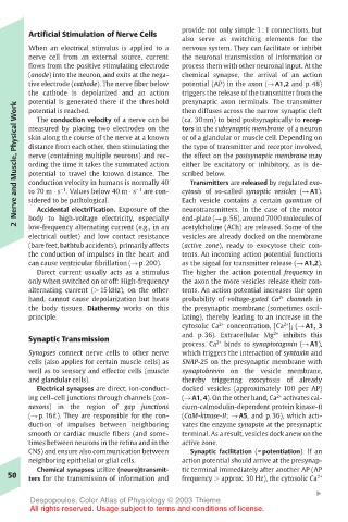 the body tissues. Diathermy works on this the presynaptic membrane (sometimes oscil-
