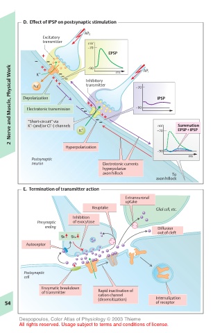 Nerve and Muscle, Physical Work Depolarization Inhibitory –70 IPSP