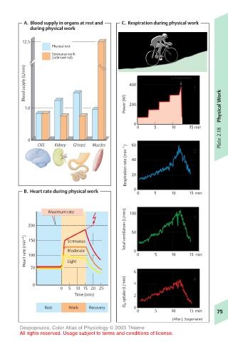 A. Blood supply in organs at rest and C. Respiration during physical work