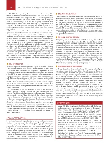 sicians. Teleintensivists under this model will simultaneously be team regional care centers or use of telemedicine, such as pastoral care or