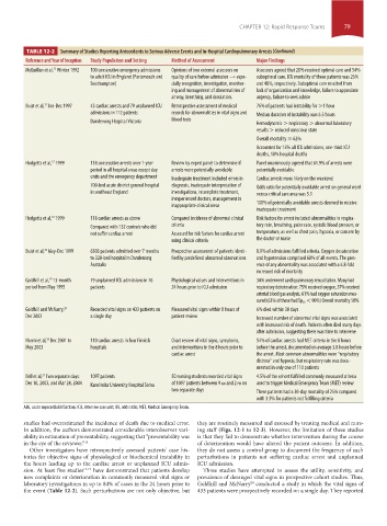 TABLE 12-2 Summary of Studies Reporting Antecedents to Serious Adverse Events and In-Hospital Cardiopulmonary Arrests (Continued)