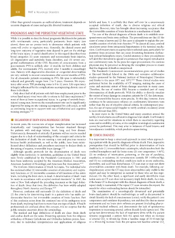PROGNOSIS AND THE PERSISTENT VEGETATIVE STATE The core of the clinical diagnosis of brain death is to establish unre-