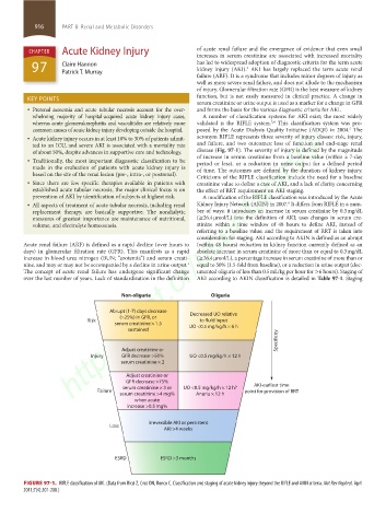 over the last number of years. Lack of standardization in the definition AKI according to AKIN classification is detailed in Table 97-1. Staging