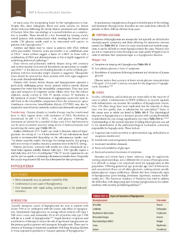 the insulin requirements fall over the subsequent few days postepisode. varying symptomatology, and a different list of causes of hypoglycemia.
