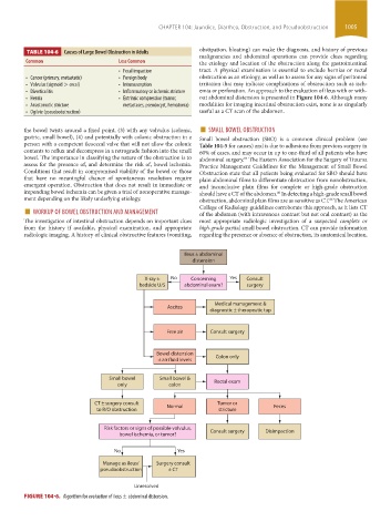 ■ WORKUP OF BOWEL OBSTRUCTION AND MANAGEMENT College of Radiology guidelines corroborate this approach, as it lists CT