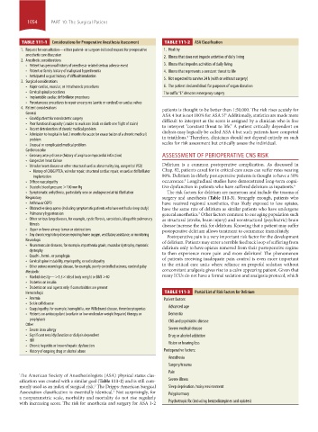 TABLE 111-1 Considerations for Preoperative Anesthesia Assessment TABLE 111-2 ASA Classification