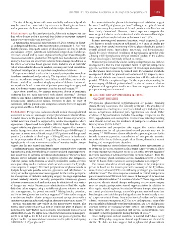 A perioperative myocardial infarction rate of 5.2% is reported in diabet- 25% dextrose, usually require an additional 2 to 3 units of insulin per