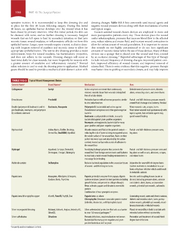 operative incision. It is recommended to keep this dressing dry and dressing changes. Table 112-3 lists commonly used topical agents and