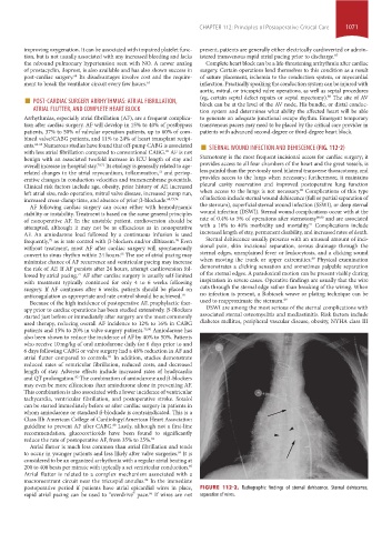 postoperative period if patients have atrial epicardial wires in place, FIGURE 112-2. Radiographic findings of sternal dehiscence. Sternal dehiscence,