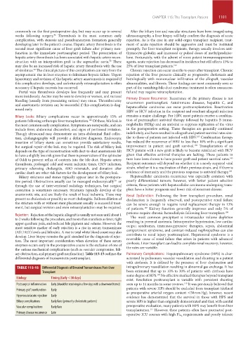 ary obstruction, and primary graft nonfunction). Table 115-15 outlines the Pulmonary Complications: Hepatopulmonary syndrome (HPS) is char-