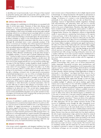 or who is suspected of having a cervical spine injury, the neck should not of tissue perfusion. A fall in blood pressure is therefore a late sign of