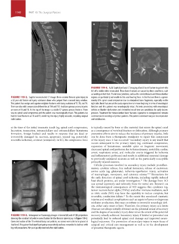 showing the construct of pedicle screw fixation for the thoracic spine injury in Figure 119-2. potentially lead to reduced spinal cord damage and improved neuro-