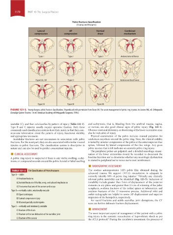 TABLE 121-2 Tile Classification of Pelvic Fractures The routine anteroposterior (AP) pelvis film obtained during the
