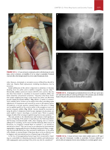 In the face of exsanguinating hemorrhage from venous pelvic bleed- FIGURE 121-6. A 46-year-old man in motor vehicle accident sustains an APC type II