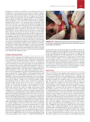 surveys have been performed should the severity of the burn injury itself FIGURE 123-1. Photograph demonstrating an endotracheal tube secured to the teeth