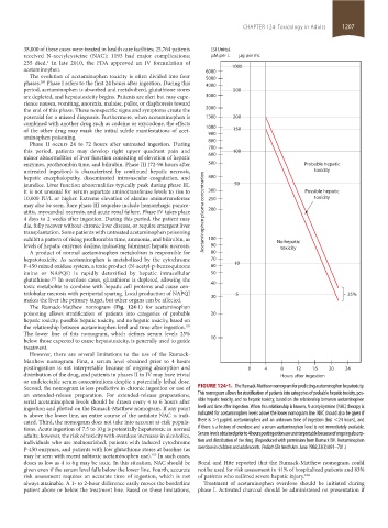 Second, the nomogram is less predictive in chronic ingestion or use of FIGURE 124-1. The Rumack-Matthew nomogram for predicting acetaminophen hepatoxicity.