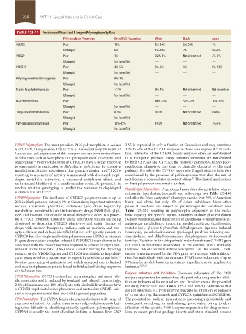 TABLE 125-11 Prevalence of Phase I and II Enzyme Polymorphisms by Race