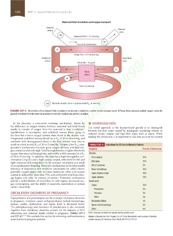 result in a fetal arterial P O 2 of 20 to 25 mm Hg. Despite a low P O 2 TABLE 127-3 Indications for ICU Care in Obstetric Patients