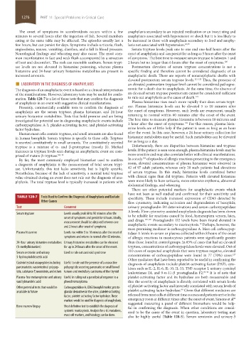 ■ LABORATORY IN THE DIAGNOSIS OF ANAPHYLAXIS elevated postmortem serum tryptase levels. 121-123 Thus, the presence of