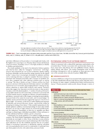 may play a role in the obesity epidemic. A number of studies performed in TABLE 130-1 Critical Care Considerations in the Extremely Obese Patient